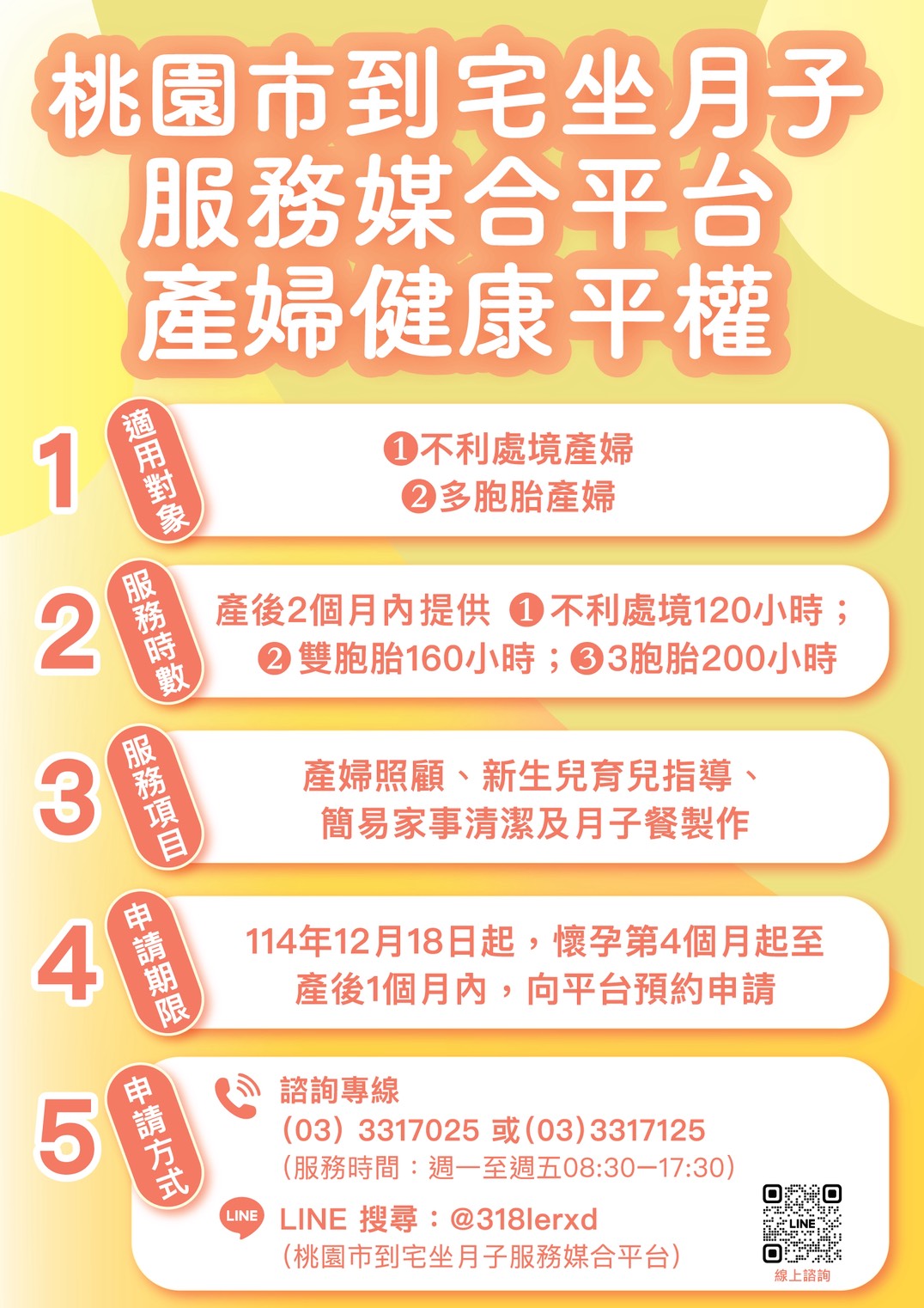 桃園市到宅坐月子服務媒合平台聯絡資訊